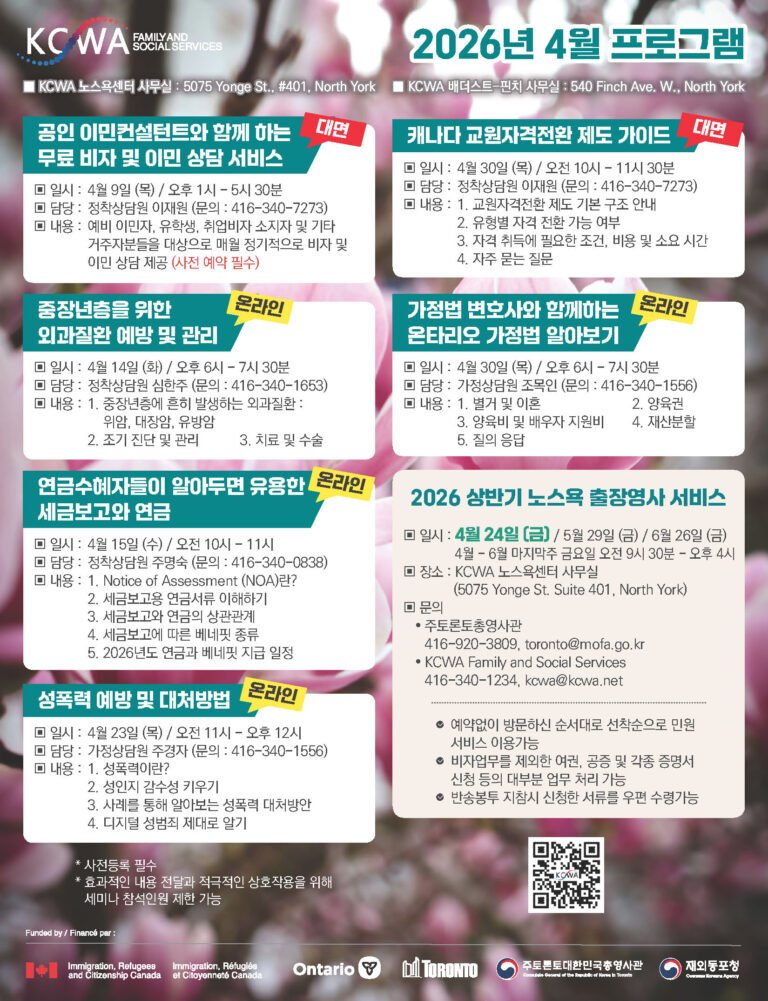 문의: 416-340-1234 또는 kcwa@kcwa.net