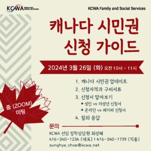 캐나다 시민권 취득을 원하시는 분들을 위한 '캐나다 시민권 신청 가이드' 세미나가 3월 26일 (화) 오전 10시부터 줌 (Zoom) 미팅을 통해