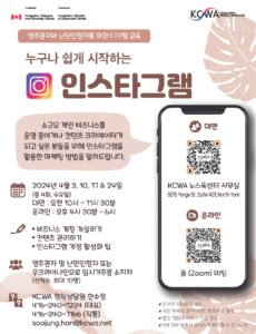 KCWA는 4월 3일 (수) 오전 10시부터 '누구나 쉽게 시작하는 인스타그램' 강좌를 총 4회에 걸쳐 KCWA 노스욕센터 사무실 (5075 Yonge St.