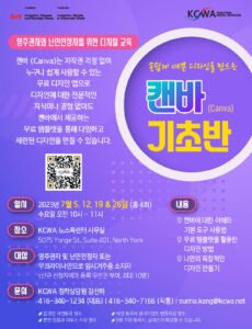 안녕하세요? 프레젠테이션에서 로고, 소셜 미디어 게시물에 이르기까지 무엇이든지 간편하게 만들 수 있는 캔바(Canva). KCWA 에서는 '캔바 기초반' 강좌를 KCWA 노스욕센터