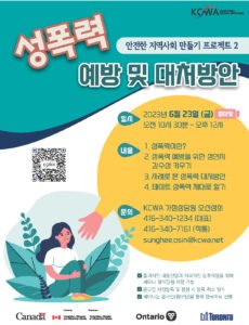 안녕하세요? KCWA에서는 안전한 지역사회 만들기 프로젝트 2 '성폭력 예방 및 대처방안' 강좌를 6월 23일 (금) 오전 10시 30분부터 줌(Zoom) 미팅을